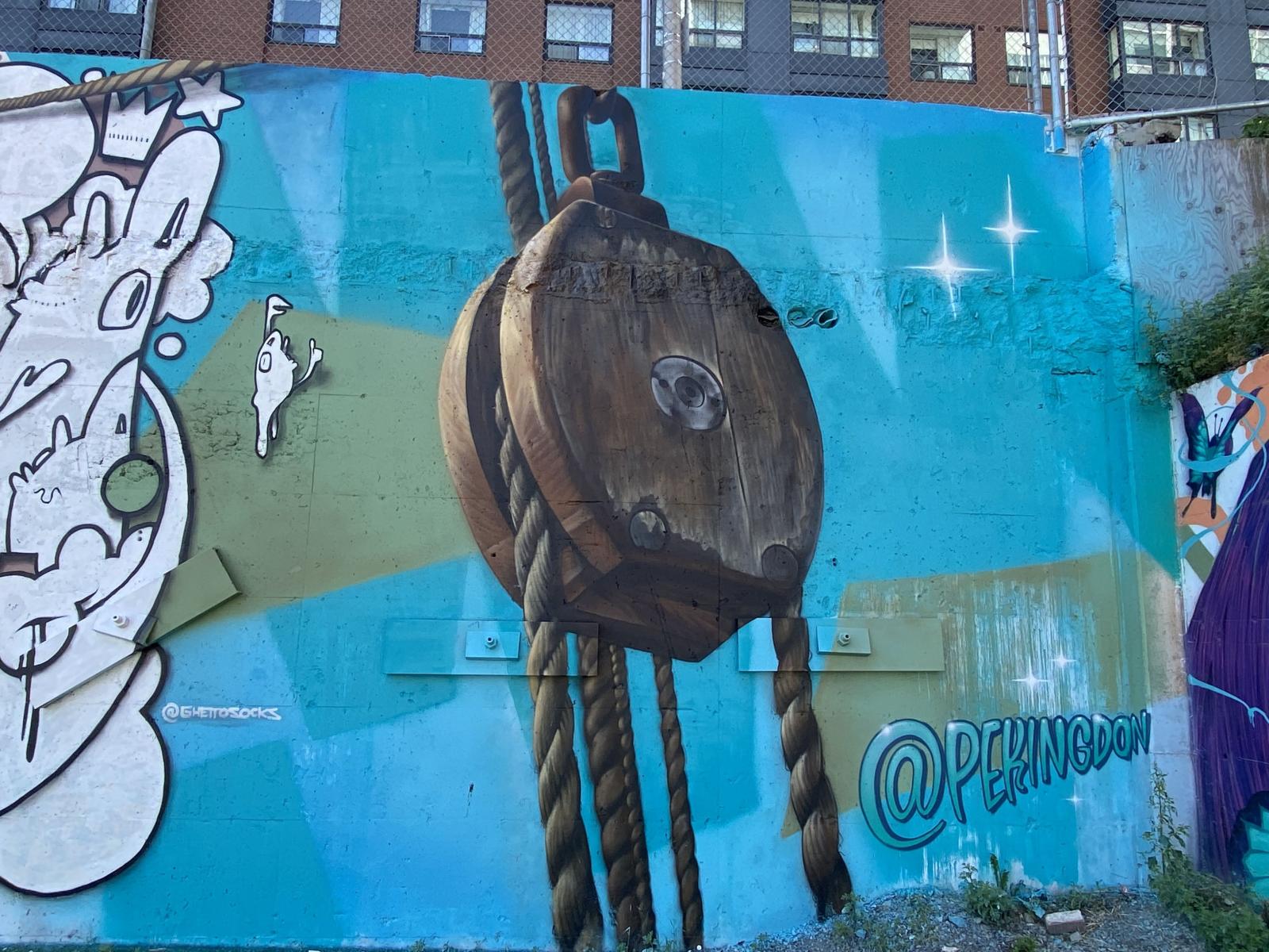 See photos of the murals painted at Pavillion 22 at The Seaport, "The Hub" on Grafton Street, and The Halifax Waterfront. Click on the photos for artist information.